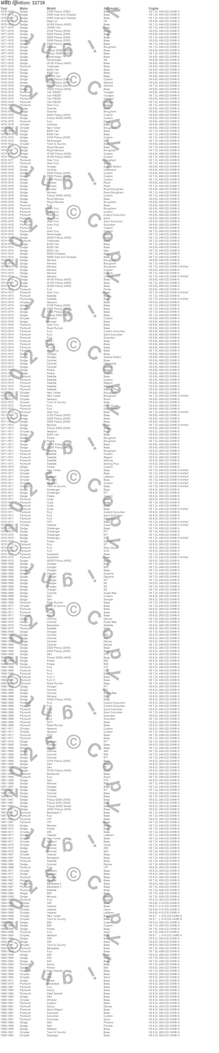 300, 330, 440, 880, B100 Van, B200 Van, B300 Van, Barracuda, Belvedere, Belvedere II, CB300 Van, Challenger, Charger, Cordoba, Coronet, Cuda, Custom, D100 Pickup, D150 Pickup, D200 Pickup