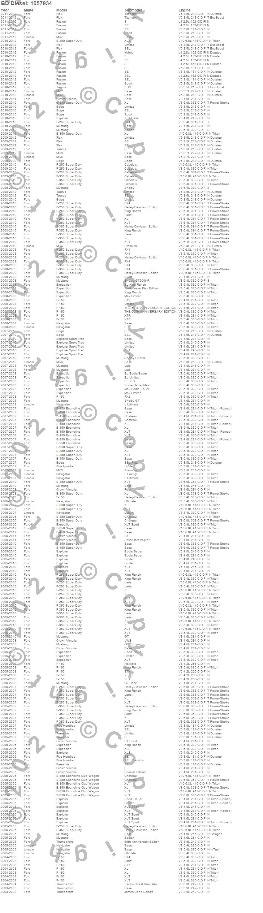 Crown Victoria, E-150 Econoline, E-250 Econoline, E-350 Econoline Club Wagon, E-350 Super Duty, E-450 Super Duty, Edge, Expedition, Explorer, Explorer Sport Trac, F-150, F-250 Super Duty, F-350, F-350 Super Duty, Five Hundred, Flex, Freestyle, Fusion, MKS, MKT