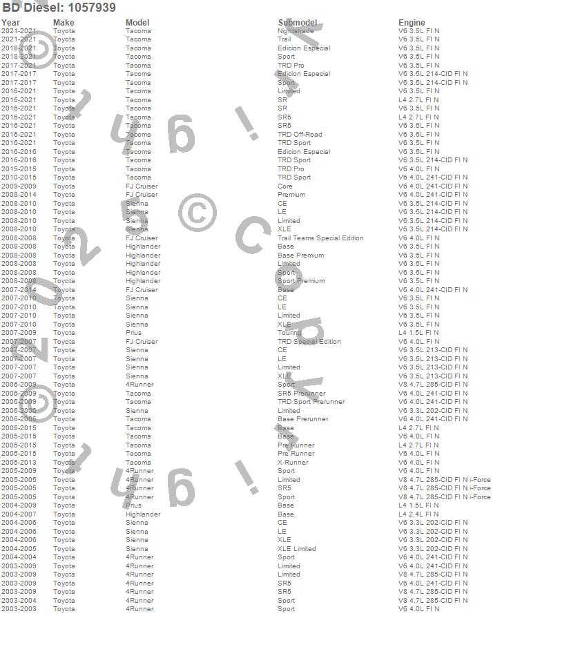 4Runner, FJ Cruiser, Highlander, Prius, Sienna, Tacoma, Toyota, 2021, 2020, 2019, 2018, 2017, 2016, 2015, 2014, 2013, 2012, 2011, 2010, 2009