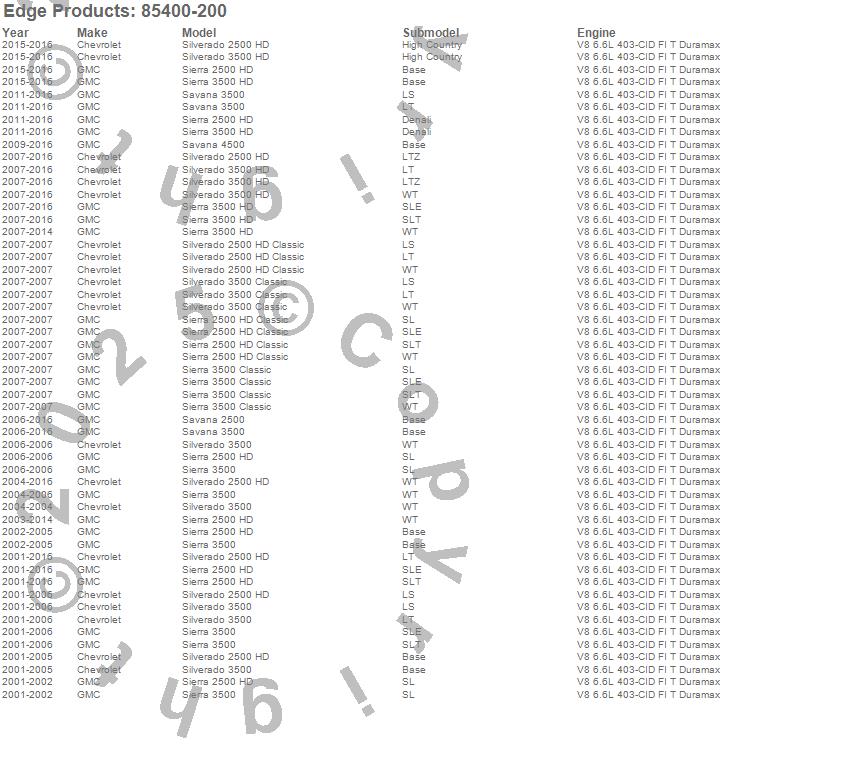 Below is an abbreviated list of applications for the CTS3 Diesel Evolution Programmer.