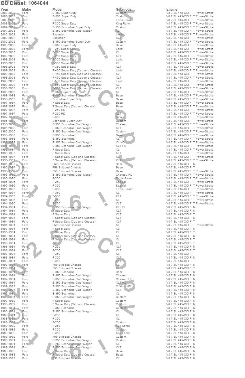 E-250 Econoline Club Wagon, E-350 Econoline, E-350 Econoline Club Wagon, E-350 Super Duty, E-450 Econoline Super Duty, E-450 Super Duty, E-550 Econoline Super Duty, E-550 Super Duty, Econoline Super Duty, Excursion, F Super Duty, F-250, F-250 HD, F-250 Super Duty, F-350, F-350 Super Duty, F-450 Super Duty, F-550 Super Duty, F59, Ford
