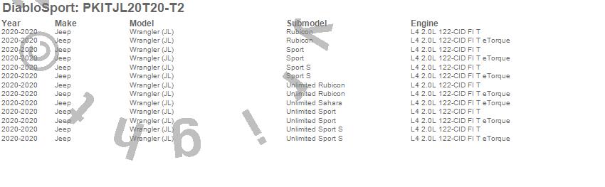 DiabloSport - Modified PCM And Trinity T2 Programmer Kit P/N PKITJL20T20-T2 Features:
