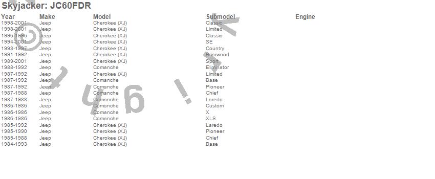 Cherokee (XJ), Comanche, Jeep, 2001, 2000, 1999, 1998, 1997, 1996, 1995, 1994, 1993, 1992, 1991, 1990, 1989, 1988, 1987, 1986, 1985