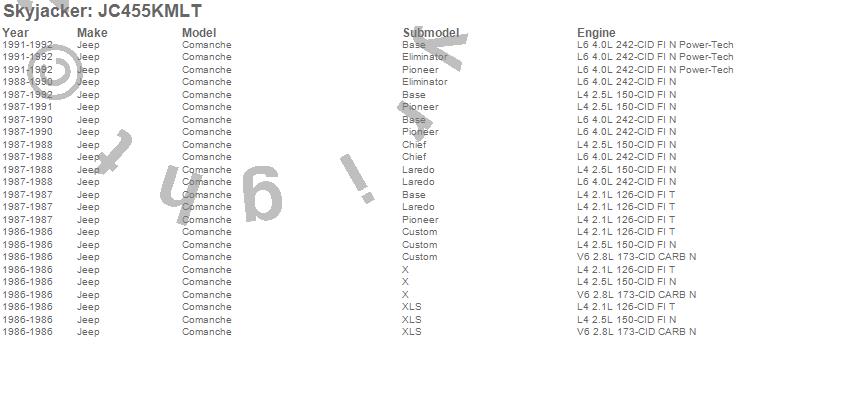 Below is an abbreviated list of applications for the Suspension Lift Kit w/Shock.