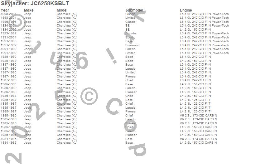 Skyjacker - Rock Ready Suspension Lift Kit P/N JC6258KSBLT Features: