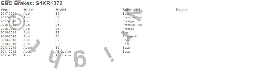 Below is an abbreviated list of applications for the S4 Kits Redstuff and USR Rotor.