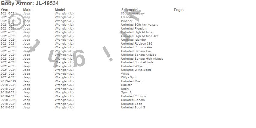 Body Armor - Front Base Bumper P/N JL-19534 Features: