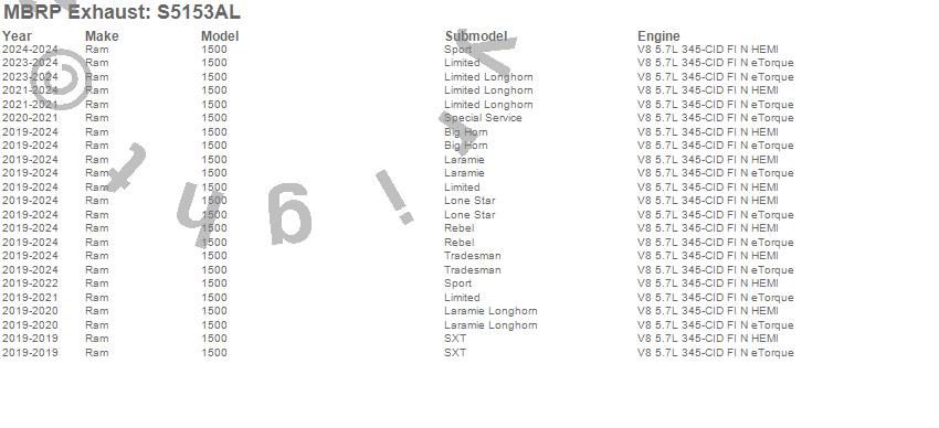 Below is an abbreviated list of applications for the Armor Lite Cat Back Exhaust System.