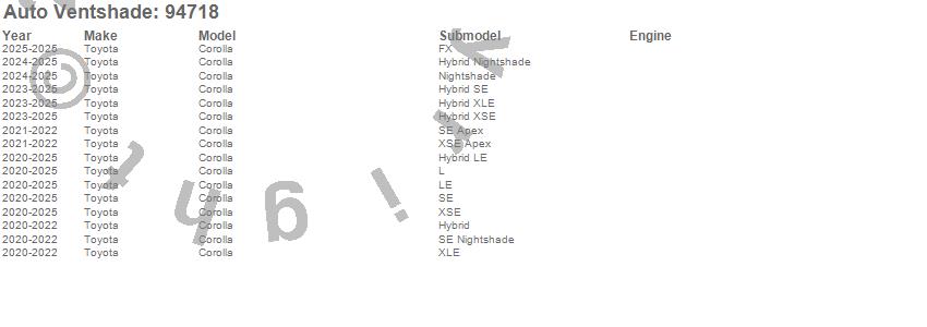 Below is an abbreviated list of applications for the Ventvisor Deflector 4 pc..