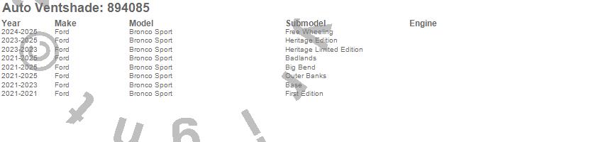 Below is an abbreviated list of applications for the Ventvisor Low Profile Deflector 4 pc..