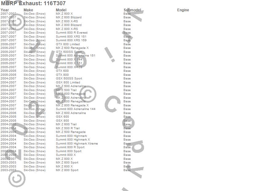 Below is an abbreviated list of applications for the Snowmobile Trail Exhaust.