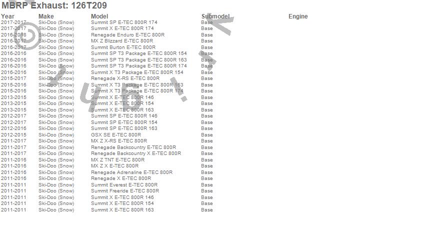 Below is an abbreviated list of applications for the Snowmobile Trail Exhaust.
