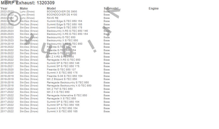Below is an abbreviated list of applications for the Snowmobile Race Exhaust.