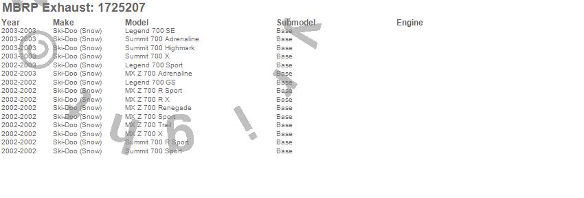 Below is an abbreviated list of applications for the Snowmobile Trail Exhaust.