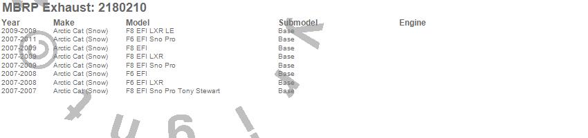 Below is an abbreviated list of applications for the Snowmobile Standard Exhaust.
