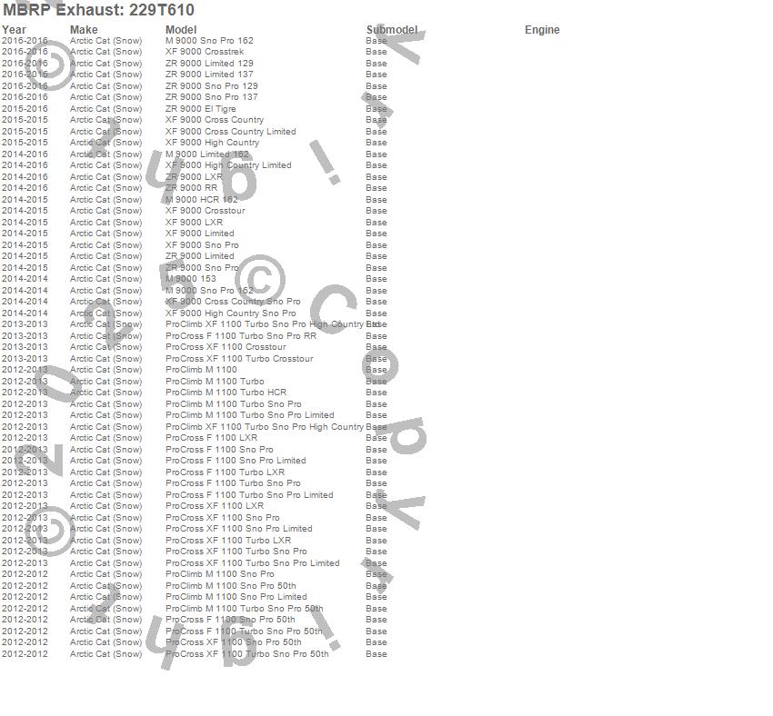 Below is an abbreviated list of applications for the Snowmobile Trail Exhaust.