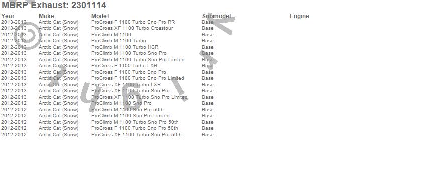Below is an abbreviated list of applications for the Snowmobile Race Exhaust.