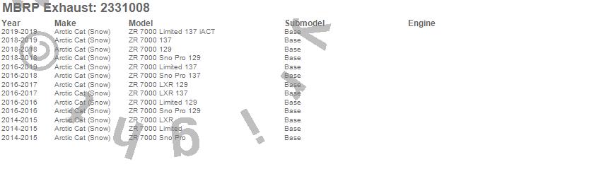 Below is an abbreviated list of applications for the Snowmobile Race Exhaust.
