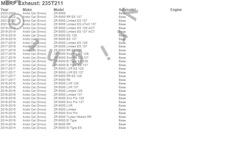 Below is an abbreviated list of applications for the Snowmobile Trail Exhaust.