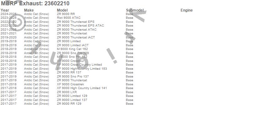 Below is an abbreviated list of applications for the Snowmobile Race Exhaust.
