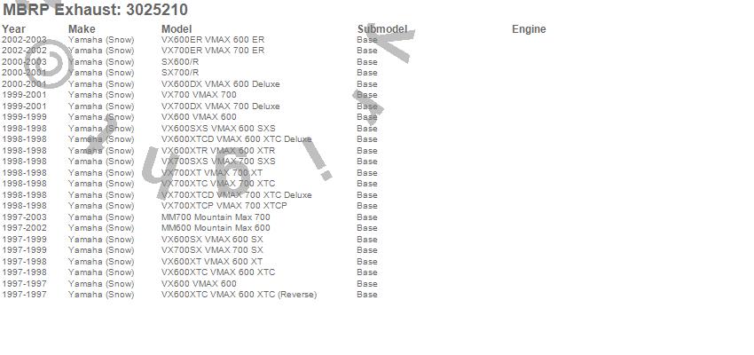 Below is an abbreviated list of applications for the Snowmobile Trail Exhaust.