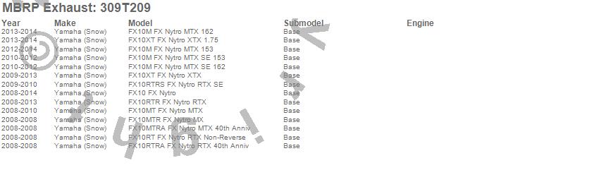 Below is an abbreviated list of applications for the Snowmobile Trail Exhaust.
