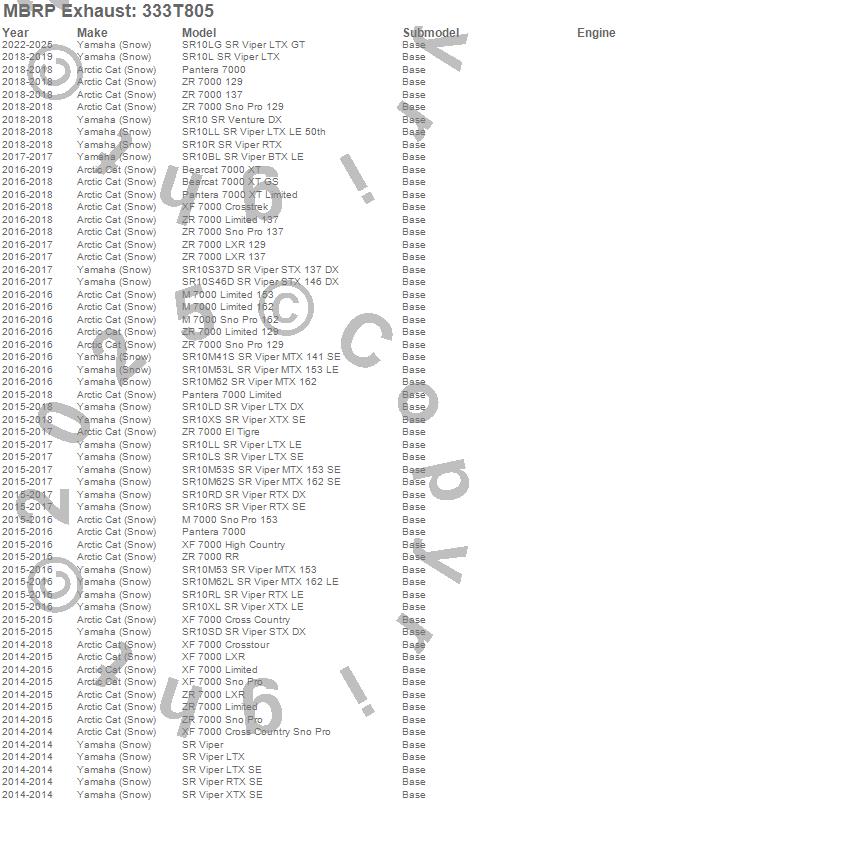 Below is an abbreviated list of applications for the Snowmobile Trail Exhaust.