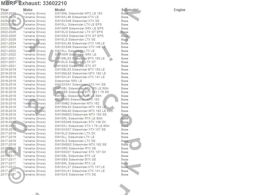Below is an abbreviated list of applications for the Snowmobile Standard Exhaust.