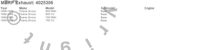 Below is an abbreviated list of applications for the Snowmobile Trail Exhaust.