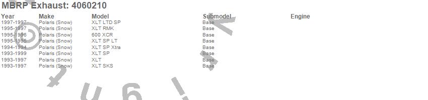Below is an abbreviated list of applications for the Snowmobile Race Exhaust.