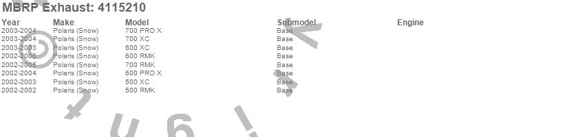 Below is an abbreviated list of applications for the Snowmobile Trail Exhaust.