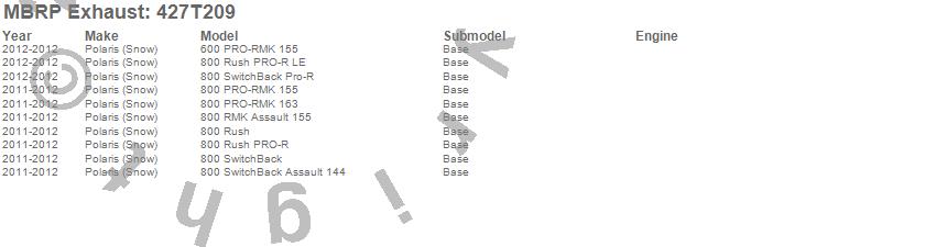 Below is an abbreviated list of applications for the Snowmobile Trail Exhaust.