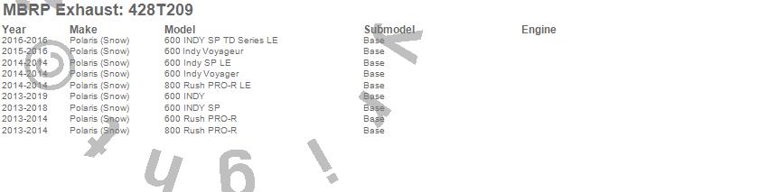 Below is an abbreviated list of applications for the Snowmobile Trail Exhaust.