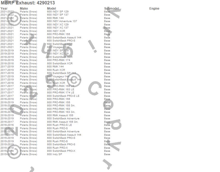 Below is an abbreviated list of applications for the Snowmobile Race Exhaust.