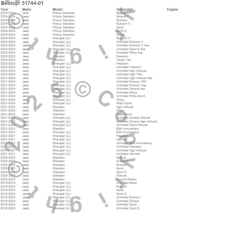 Bestop has been in business for over 50 years. Starting out as a small trim shop making canvas tops for WWII Jeeps in Boulder, Colorado, we have gradually expanded our product lines and operation over the years to be your full service Jeep top and Jeep accessories provider. Bestop has been the factory original supplier to DaimlerChrysler for Jeep soft tops since 1986. Bestop has also been the factory supplier of soft tops and accessories for Suzuki, Isuzu, GM, Toyota and many other small SUVs. Additionally, we've also been serving the Toyota truck market and Toyota accessories market for Land Cruiser for over 30 years. At Bestop, we proudly utilize the finest materials and adhere to the factory original specifications for fit, function, style and craftsmanship – so you know you're getting the best there is.