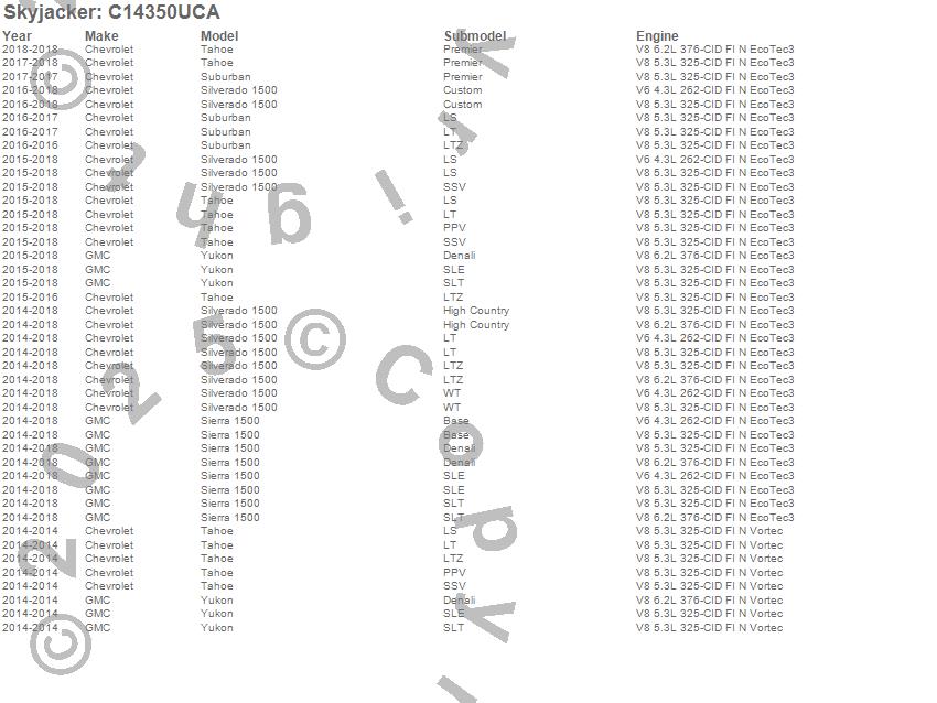 Sierra 1500, Silverado 1500, Suburban, Tahoe, Yukon, Chevrolet, GMC, 2018, 2017, 2016, 2015, 2014