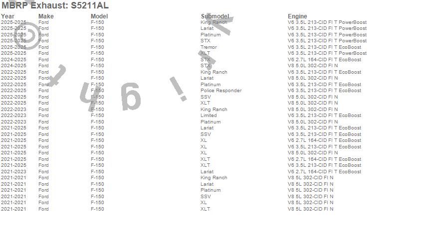 Below is an abbreviated list of applications for the Armor Lite Cat Back Exhaust System.