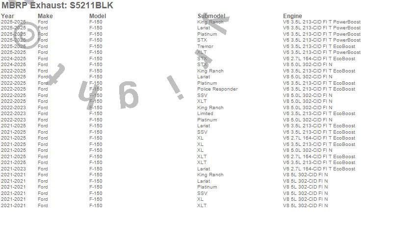 Below is an abbreviated list of applications for the Armor BLK Cat Back Exhaust System.
