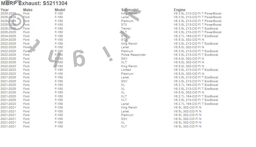 Below is an abbreviated list of applications for the Armor Pro Cat Back Exhaust System.