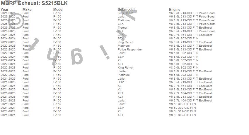 Below is an abbreviated list of applications for the Armor BLK Cat Back Exhaust System.