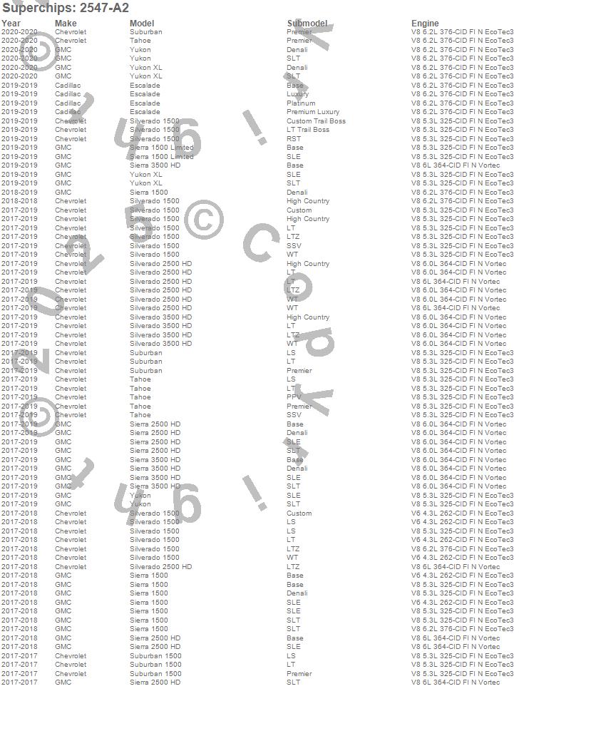 Escalade, Sierra 1500, Sierra 1500 Limited, Sierra 2500 HD, Sierra 3500 HD, Silverado 1500, Silverado 2500 HD, Silverado 3500 HD, Suburban, Suburban 1500, Tahoe, Yukon, Yukon XL, Cadillac, Chevrolet, GMC, 2020, 2019, 2018, 2017
