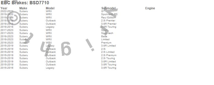 Below is an abbreviated list of applications for the BSD Series Sport Rotor Set w/Ultra Quiet V Slot Configuration.