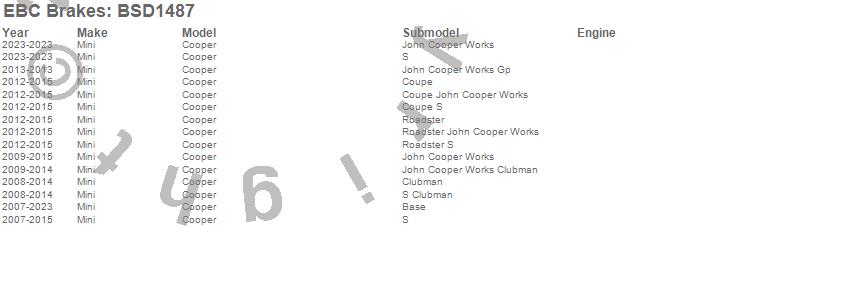 Below is an abbreviated list of applications for the BSD Series Sport Rotor Set w/Ultra Quiet V Slot Configuration.