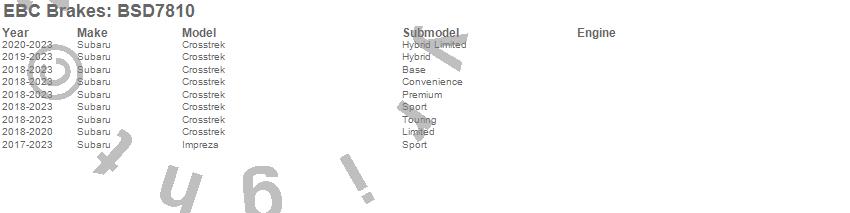 Below is an abbreviated list of applications for the BSD Series Sport Rotor Set w/Ultra Quiet V Slot Configuration.