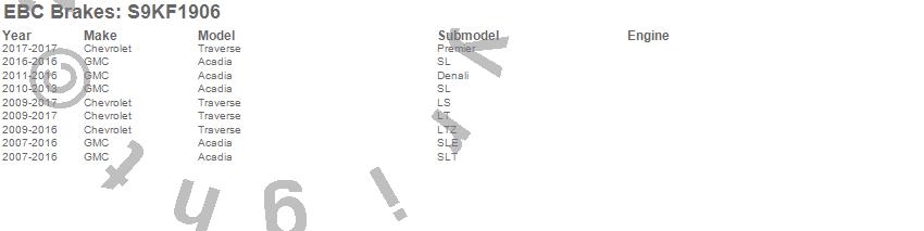 Below is an abbreviated list of applications for the S9 Kits Yellowstuff and USR Rotors.