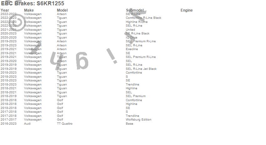 Below is an abbreviated list of applications for the S6 Kits Bluestuff and GD Rotors.