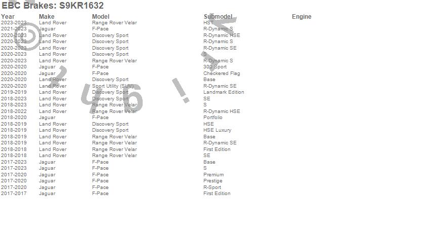 Below is an abbreviated list of applications for the S9 Kits Yellowstuff and USR Rotors.