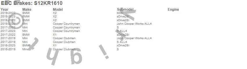 Below is an abbreviated list of applications for the S12 Kits Redstuff and RK Rotors.