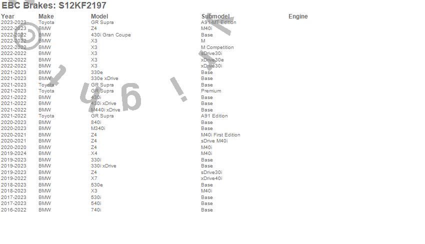 Below is an abbreviated list of applications for the S12 Kits Redstuff and RK Rotors.