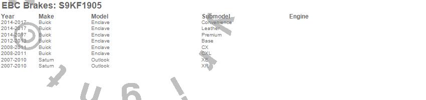 Below is an abbreviated list of applications for the S9 Kits Yellowstuff and USR Rotors.